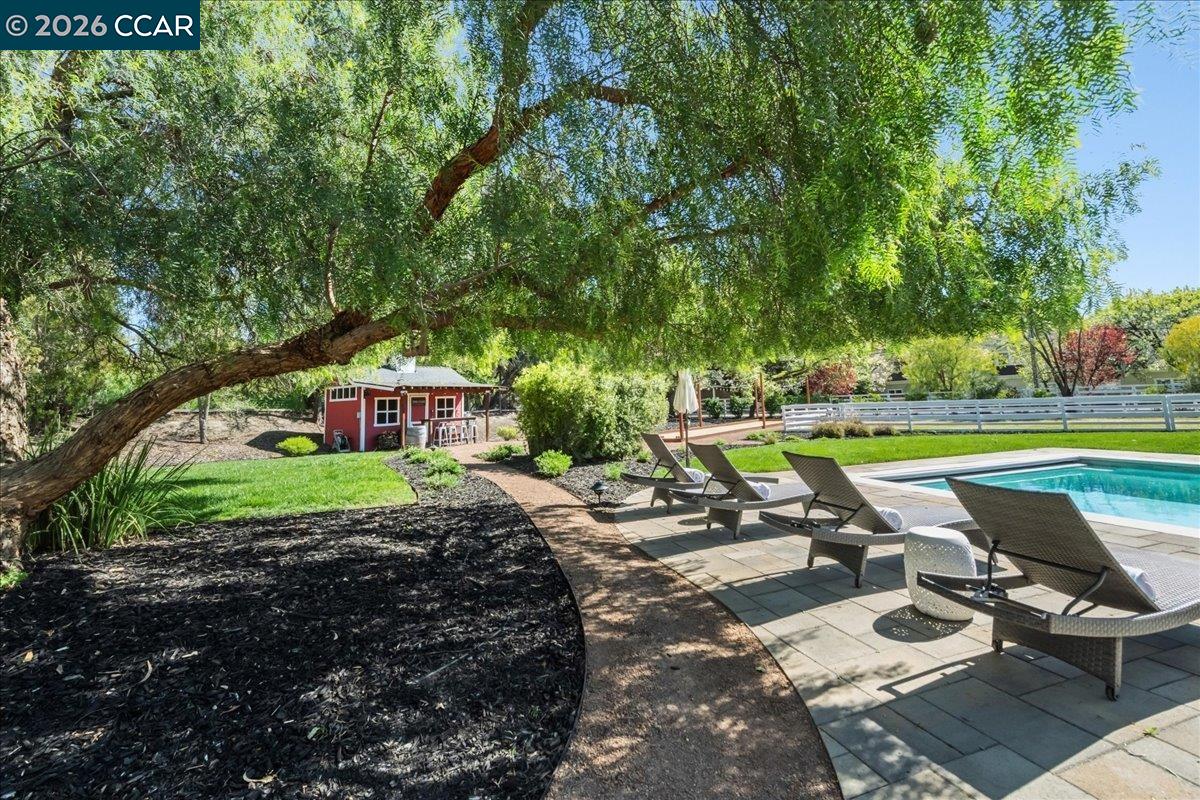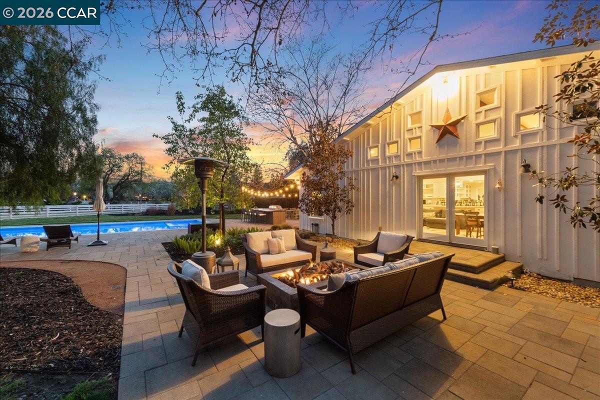 Tucked at the end of a quiet cul-de-sac in the heart of Danville, Heritage Acre Estate is a rare level single-story retreat on a flat one-acre+- lot, blending privacy, lifestyle, and refined living. Ideally located near top-rated K-12 schools and just minutes to downtown Danville, this exceptional property offers estate-style living with convenience and timeless charm. Thoughtfully remodeled with approximately $450,000 in upgrades, the home offers 5 bedrooms, an office, and a versatile bonus room across approximately 3,377+- square feet. Soaring ceilings and natural light enhance the open layout, while the remodeled kitchen features marble countertops, high-end appliances, and designer-inspired finishes, flowing seamlessly into expansive living and entertaining spaces. The grounds are designed for unforgettable living, featuring a pool and spa, outdoor kitchen, fire pit, bocce court, horse arena, and multiple entertaining areas surrounded by mature landscaping. A reimagined chicken coop serves as a unique entertainment space with bar seating and taps. Additional highlights include a tankless water heater, well irrigation, outdoor TVs, and updated garage door with opener. A special home where everyday moments become traditions.