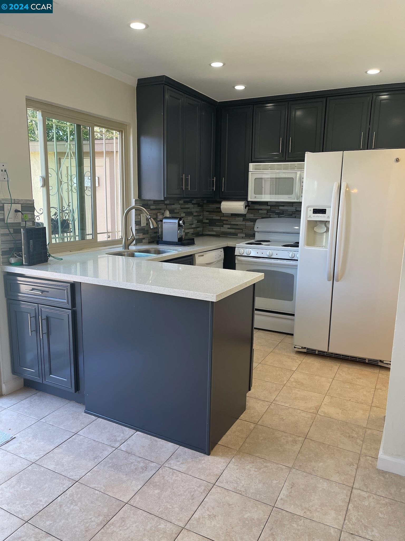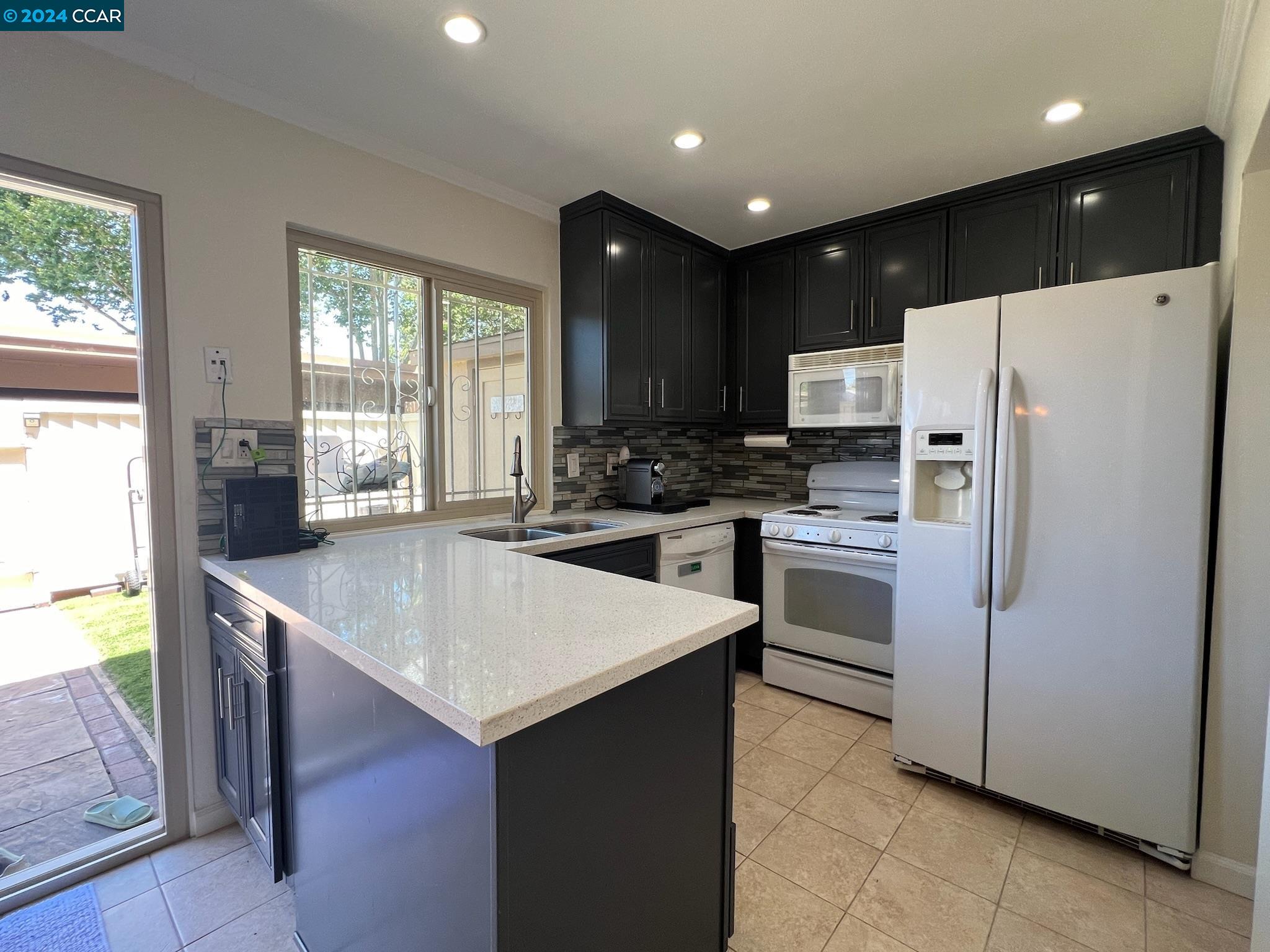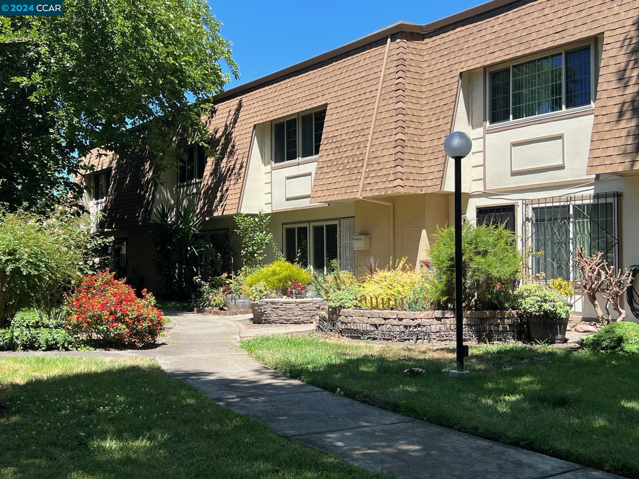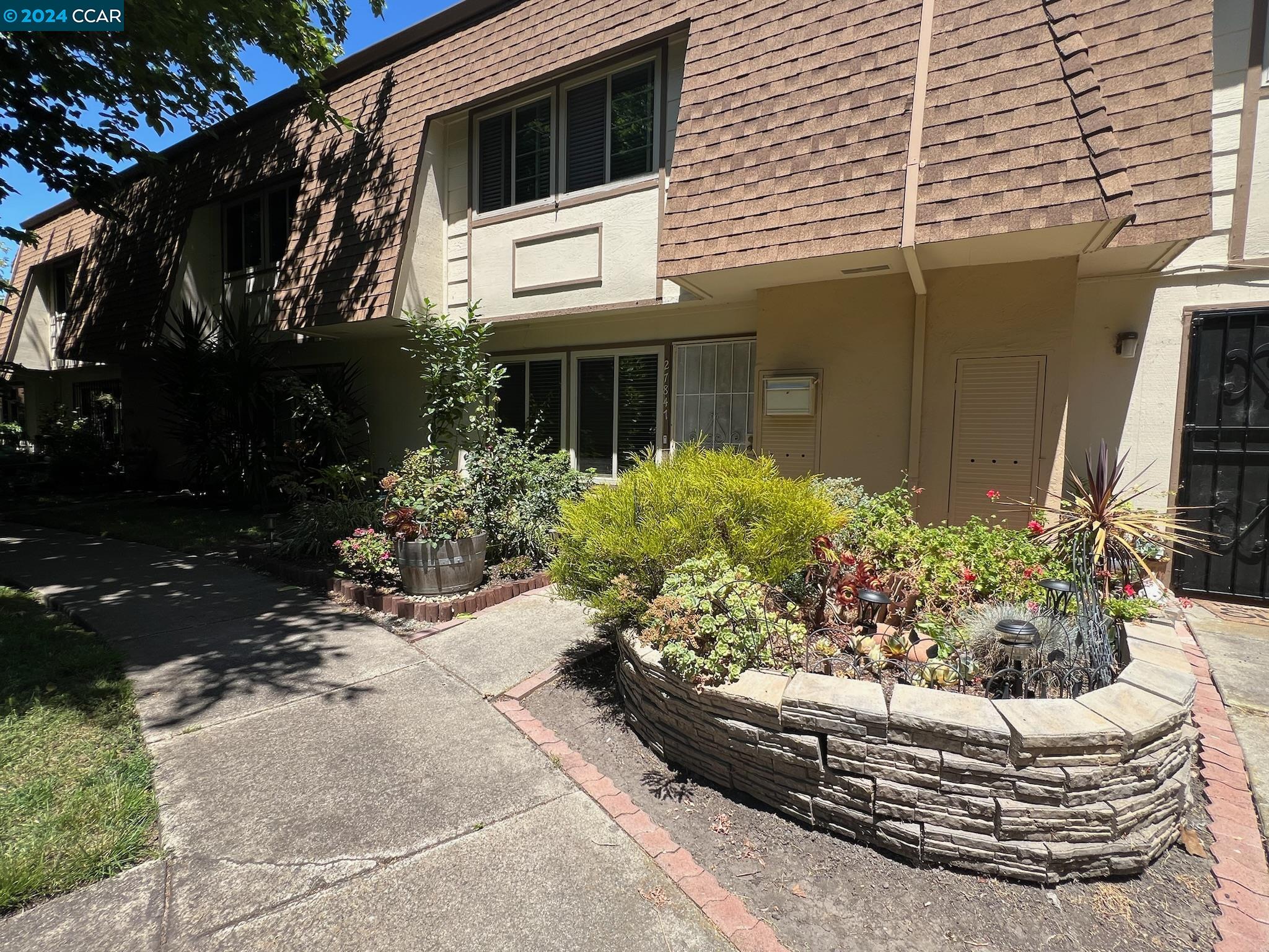 A well-maintained and upgraded 3-bedroom/1.5-bath townhome. Ideally located in the complex with two assigned covered parking spots directly at your back door, plus ample guest and street parking. Features recently installed Low-E Dual-Pane windows. The family room boasts recessed lighting, a custom-built entertainment center, and wood-laminate flooring. The dining area and kitchen are complemented by tile floors. The kitchen is upgraded with recessed lighting, stone countertops, a custom backsplash, and includes a dishwasher, microwave, and refrigerator. Three spacious bedrooms feature large closets. Includes inside laundry. The private backyard is enhanced with pavers and a storage shed. Conveniently close to schools and shopping, with easy commuter access to Hwy 92/880. OPEN HOUSE Sat July 6th 1-4pm