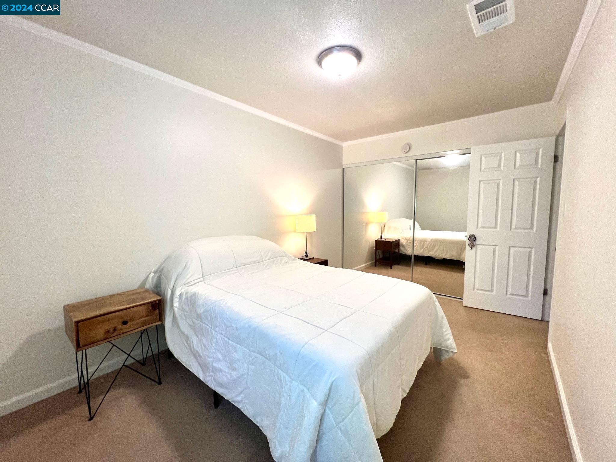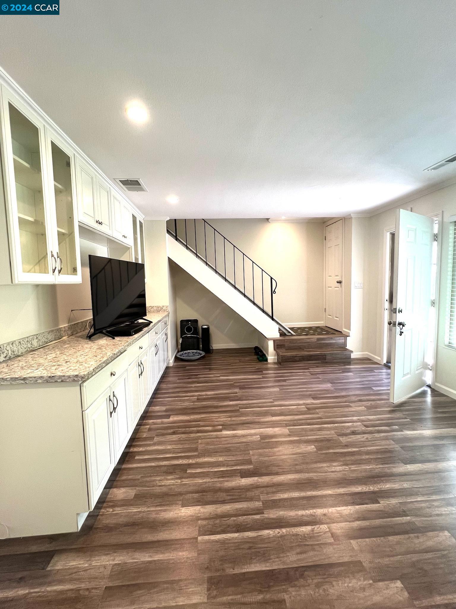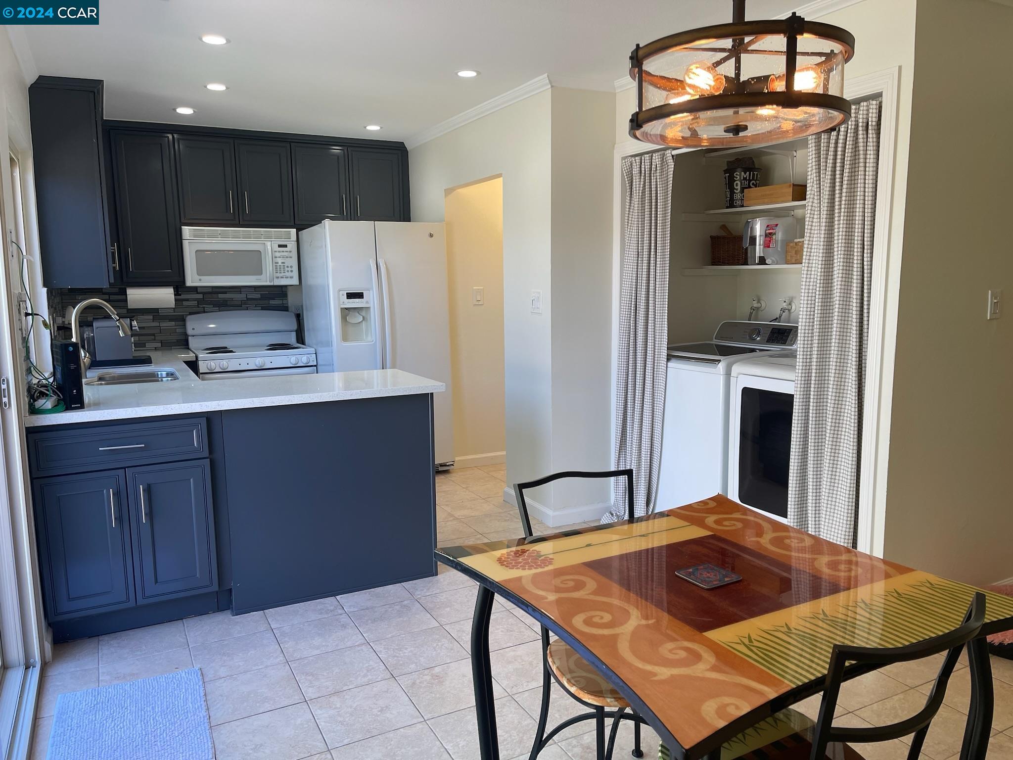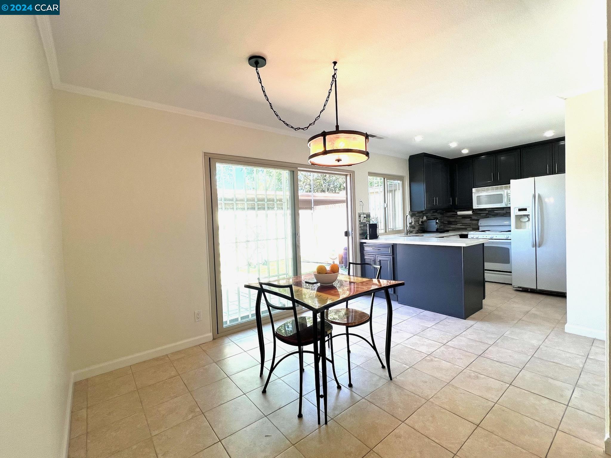 A well-maintained and upgraded 3-bedroom/1.5-bath townhome. Ideally located in the complex with two assigned covered parking spots directly at your back door, plus ample guest and street parking. Features recently installed Low-E Dual-Pane windows. The family room boasts recessed lighting, a custom-built entertainment center, and wood-laminate flooring. The dining area and kitchen are complemented by tile floors. The kitchen is upgraded with recessed lighting, stone countertops, a custom backsplash, and includes a dishwasher, microwave, and refrigerator. Three spacious bedrooms feature large closets. Includes inside laundry. The private backyard is enhanced with pavers and a storage shed. Conveniently close to schools and shopping, with easy commuter access to Hwy 92/880. OPEN HOUSE Sat July 6th 1-4pm